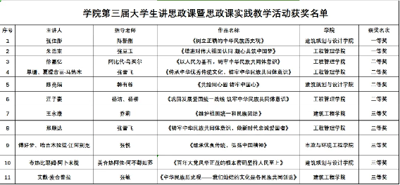以此次大学生讲思政课比赛暨思政课实践教学活动为契机,学院将坚持不懈用习近平新时代中国特色社会主义思想铸魂育人,深入贯彻落实习近平总书记关于深化思想政治理论课改革创新的重要讲话精神,把铸牢中华民族共同体意识融入课堂,引导学生在“大思政课”中受教育、长才干、作贡献,让中华民族共同体意识在各族师生中牢固树立,推动学院民族团结进步事业取得更大的成绩。