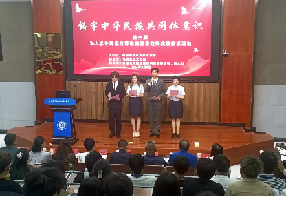 决赛现场,参赛的11组选手围绕铸牢中华民族共同体意识为主题,结合习近平总书记关于加强和改进民族工作的重要思想,运用案例引入、现身说法、情理交融等授课方式,以视频音乐、情景演绎、角色扮演等生动活泼的形式,让理论讲授在实践的基础上更加生动有力。参赛选手用一堂堂别开生面的思政课,铸牢民族共同体意识,以专业为载体践行共同体意识,促进各民族师生交往交流交融。现场比赛活动感染了全体观赛的观众,为参赛的选手赢得了阵阵掌声和喝彩。
