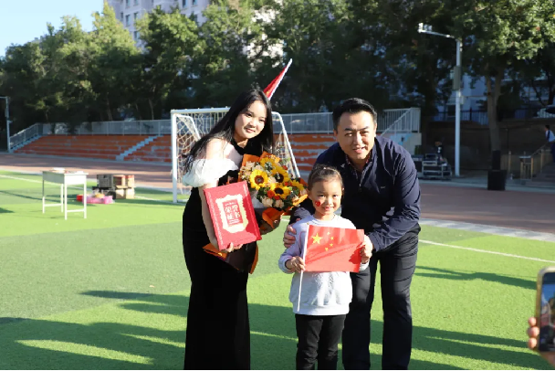 在国旗合影时刻,大家纷纷与国旗同框,拍照纪念。这一环节不仅让大家更加亲近国旗,也增强了大家的爱国情感和民族自豪感。同时,还为当日过生日的师生、居民举行了小型庆祝会,大家齐唱生日歌,共享蛋糕,欢声笑语中增添了节日的欢乐气氛。