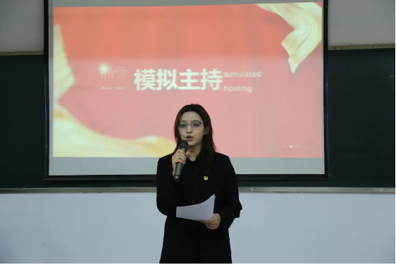 比赛邀请校团委老师做指导,活动环节紧凑且内容丰富,比赛设置自我介绍、模拟主持、才艺展示等多个部分。