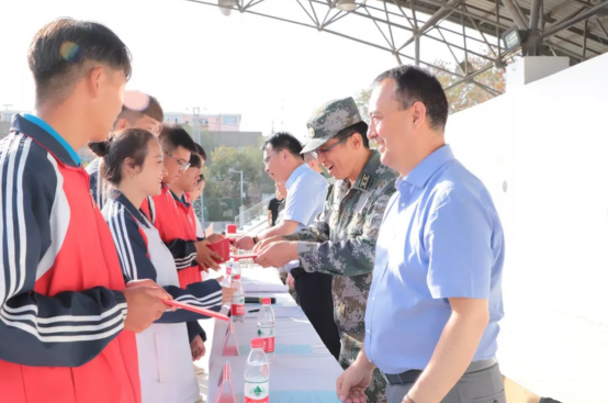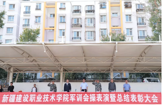 迎着凉爽的秋风,沐浴着和煦的晨光,9月25日上午,我院在城建校区和建材校区隆重举行军训会操表演暨总结表彰大会。中国人民解放军69006部队政治教导员曾继涛、中国人民解放军69006部队干事单宝玉,我院党委副书记、副院长阳东升,党委委员、副院长石建平,副处级调研员陈为,党委委员、宣传部部长阿不都外力·胡达白尔地参加了大会。大会由党委委员、副院长石建平主持。