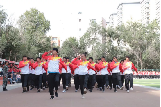 分列式在《阅兵进行曲》中进行,响亮的口号、矫健的步伐、整齐的队列、饱满的热情、庄重的气氛,向学院领导和师生们递交了一份满意的答卷。