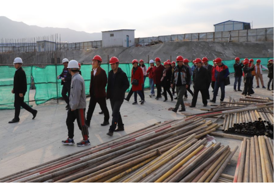 随后,老师们在常务副经理兼项目总工柏永鹤,安全总监孟祥彦,项目副经理游树正,质检部部长李若若,安环部部长文博的陪同下实地考察了伊水湾三期项目。