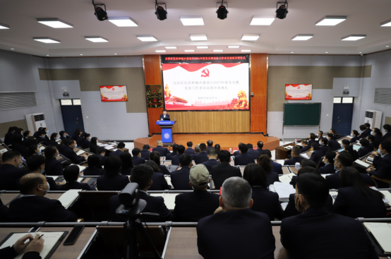 为深入学习贯彻习近平新时代中国特色社会主义思想,扎实开展党史学习教育,全面提升党员党的理论水平和政治素养,全面提高基层党务工作者队伍素质,不断提高基层党务工作者研究问题、解决问题、总结提高、指导实践的能力,充分发挥党组织核心作用和战斗堡垒作用。11月17日,自治区住房和城乡建设厅2021年度党员暨党务工作者培训班开班典礼在我院召开。住建厅167名党员和学院188名党员进行为期一周的线上线下集中培训,培训主要以专题辅导、互动教学等形式开展。开班典礼由学院党委委员、组织人事处处长,党校副校长陈红同志主持。