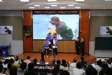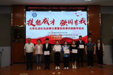 活动中,工程管理学院学生李雅洁讲述了点靓新疆建筑的魔术师孙国城,体现了执着专注,精益求精的大国工匠精神;建筑工程学院学生杨杰和徐鹏程以相声的方式,展示了在建筑领域敢闯敢拼青年任龙,体现了他不言放弃,真抓实干,奉献建设美丽新疆的美好愿望;市政与环境工程学院学生吴泓宇、孔令思、马英以情景剧的方式,演示了坚守沙漠科技为民的刘铭庭,体现了他扎根边疆,立志报国的誓言……14个作品主题鲜明,围绕新疆经济社会发展、建设事业等方面做出贡献的感人事迹和人物,讲述了新疆儿女不忘初心、牢记使命,在新的历史起点上,劈波斩浪,奋楫前行。同学们挖掘人物和事迹背后蕴含的精神、价值和力量,向在场的观众献上了一场丰盛的思政课盛宴。通过本次实践教学活动,同学们将学校小课堂与社会大课堂、所学专业与行业发展相融合,深化了学生们对思政课教学内容的认识和思考,提高了思政课的吸引力与感染力,表达了同学们听党话,跟党走,践行“技能成才,强国有我”的庄严承诺。