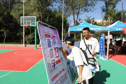 各二级学院“花式”迎新,迎“新”更用“心”,结合所在学院的特色,制作拍照墙、手持牌、签名墙,上面有各类迎新标语,营造文化氛围,烘托现场气氛,大学生记者团用相机记录着新生们兴奋、激动的瞬间;每一个拍照留念展板前,新生们都在打卡拍照留念,龙门架下留下和家人的合影,许一个与梦想有关的约定,新学期、新征程, 去追梦。