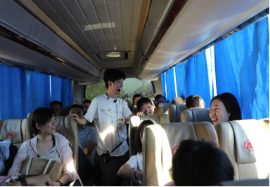 一早,各工会小组在建工校区集中乘车前往活动场地,活动于上午11时准时开始。教职工们在车上唱歌、成语接龙,一路欢声笑语。