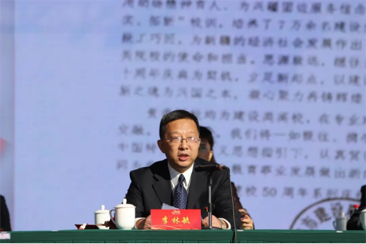 自治区住房和城乡建设厅党组成员、副厅长李林毓主持大会时说希望学院聚焦自治区党委关于现代职业教育体系建设改革中心任务,努力培养更多全面发展的建设类高素质人才,为推动中国式现代化新疆实践做出新的更大贡献。