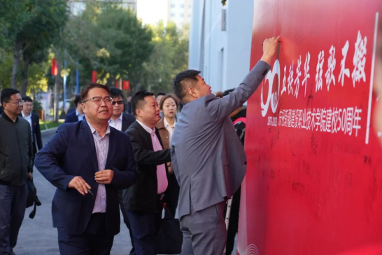 自治区住房和城乡建设厅党组书记、副厅长李宏斌在讲话中指出,学院是一所拥有光荣历史传统的学校,对推进新疆建设事业发展作出了积极贡献,发挥了重要作用。50年来,学院在历届领导班子、老师们和校友们的共同努力下,不断改革创新,日益发展壮大。截至目前,在校师生已经近9000人,学生就业率长期保持在全区高校前列。同时,学院多项研究成果,达到了国内领先水平,获得多项国家级、自治区级教学成果奖,多次荣获自治区职业院校技能大赛承办校优秀组织奖、自治区职业教育先进单位,研究实力、办学实力和学生的就业率在西北五省同类院校中名列前茅,为新疆乃至全国的住房城乡建设事业发展,培养了一大批的优秀管理人才和专业技术人才。