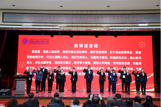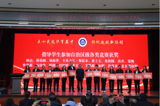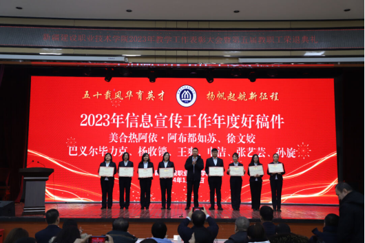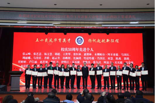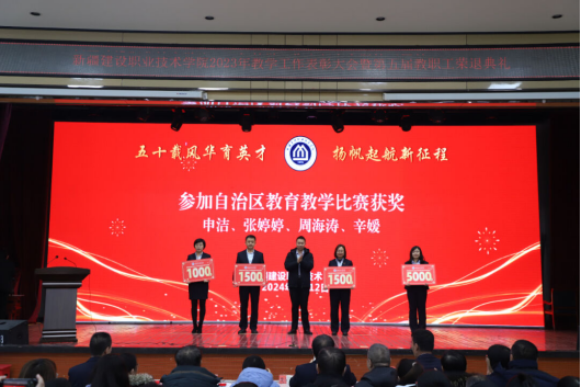 五十载风华育英才,扬帆起航新征程。1月12日, 六和宝典2025年最新版港奥开奖2023年教学工作表彰大会暨第五届教职工荣退典礼在建材校区礼堂隆重举行。回顾总结学院过去一年的教学工作,表彰学院教学工作中涌现出来的先进集体和先进个人,并以最真挚的情谊欢送荣退的老师、同事,切实营造尊师重教的浓厚氛围,进一步弘扬尊师重教的优良传统,以榜样的力量引领学院师德师风建设,激励广大教职工进一步增强工作的责任感和使命感,开拓创新、勇争一流,努力为学院高质量发展作出积极贡献。