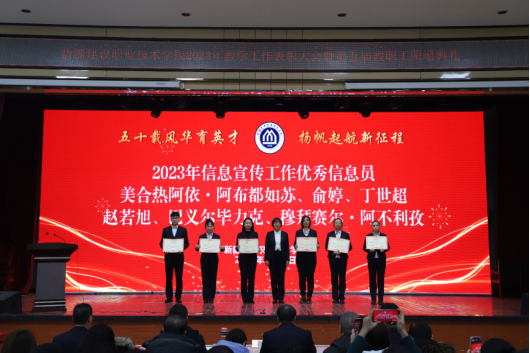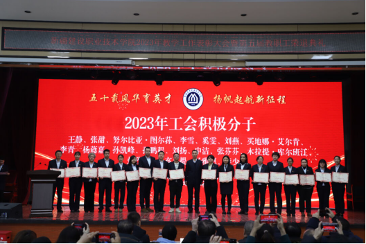 表彰大会共计表彰教职工约300余人次,对学院“优秀教师”“先进工作者”“优秀辅导员”“优秀党员”“先进工会小组、工会积极分子、优秀工会干部”“优秀信息员、年度好稿件作者”“优秀班主任”“校庆先进个人”等教职工进行表彰。正是因为拥有像这样爱校如家、爱生如子、无私奉献、可爱可敬的教师群体,才得以汇集学院高质量发展的奋进之力,他们是过去一年在学院事业发展中的优秀代表,他们立德树人,潜心教学,以身治教,用实际行动传承着建院的精神传统,用辛勤耕耘续写着教书育人的动人篇章。