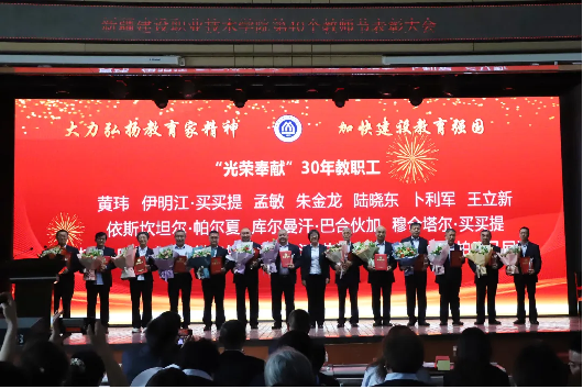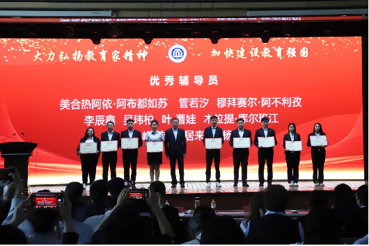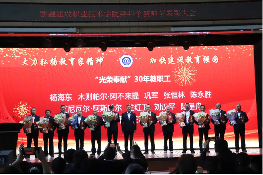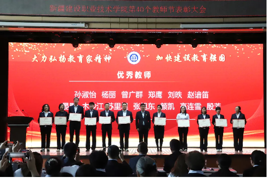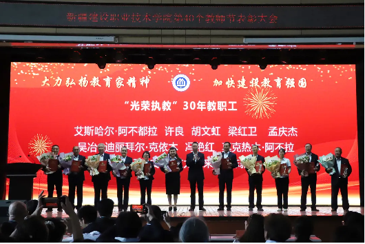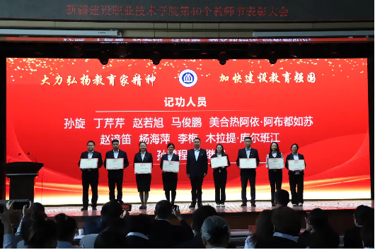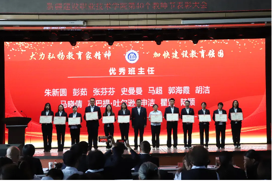 金秋送爽、硕果累累。9月10日下午,我院在建材校区礼堂隆重举行第40个教师节表彰大会。表彰学院教育教学工作中涌现出来的先进集体和先进个人,向全校教职工致以节日问候!营造尊师重教的浓厚氛围,以榜样的力量引领学院师德师风建设,大力弘扬教育家精神,携手并进,进一步增强工作的责任感和使命感,开拓创新,努力为学院高质量发展作出积极贡献。学院党委副书记、院长党进,党委副书记、副院长谢克热提·夏吾开提,党委委员、副院长吴冶,副院长余冬贞出席大会,全体教职工参加大会。党委副书记、副院长马桂珍主持大会。