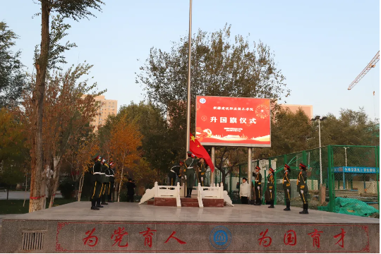 四时俱可喜,最好金秋时。我们在春天播种希望,在秋天结出丰硕的果实,在这个满是收获的季节,我们迎来了崭新的十一月。11月4日,伴着清晨第一缕阳光,我院在建工、城建、建材校区同时举行升国旗仪式,学院党委副书记、院长党进,党委副书记、副院长谢克热提·夏吾开提,党委副书记、副院长马桂珍,党委委员、纪委书记赵玉,副院长余冬贞等出席,全院教职工及学生参加了升国旗仪式。