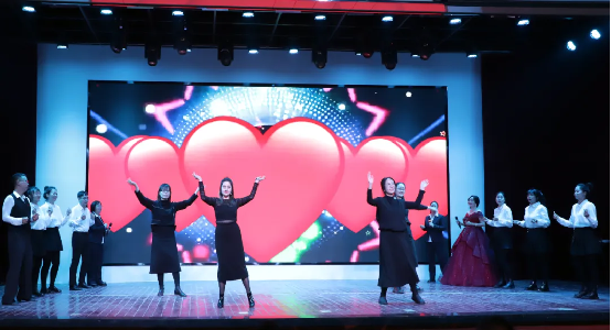 晚会开始,建筑工程学院的老师们率先登场,他们平日里在讲台上严谨认真、默默耕耘,今天却将以别样的风采出现在大家面前。他们用饱满的热情和优美的舞姿,带来开场节目——《美丽中国》,大家在这欢快的旋律中,感受祖国的壮美山河,领略新时代的蓬勃力量。