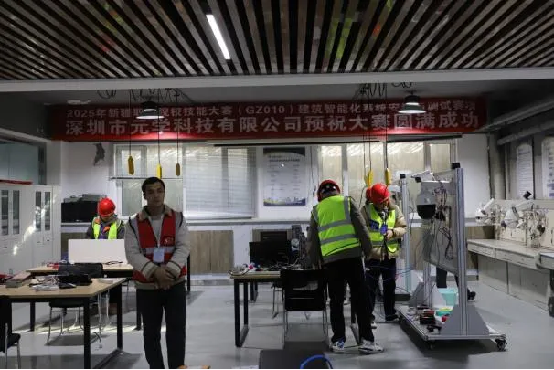 建筑智能化系统安装与调试的选手熟练地操作工具,有条不紊地进行线路布置、设备安装与调试,他们专注的神情、精准的动作,展现出扎实的专业技能。