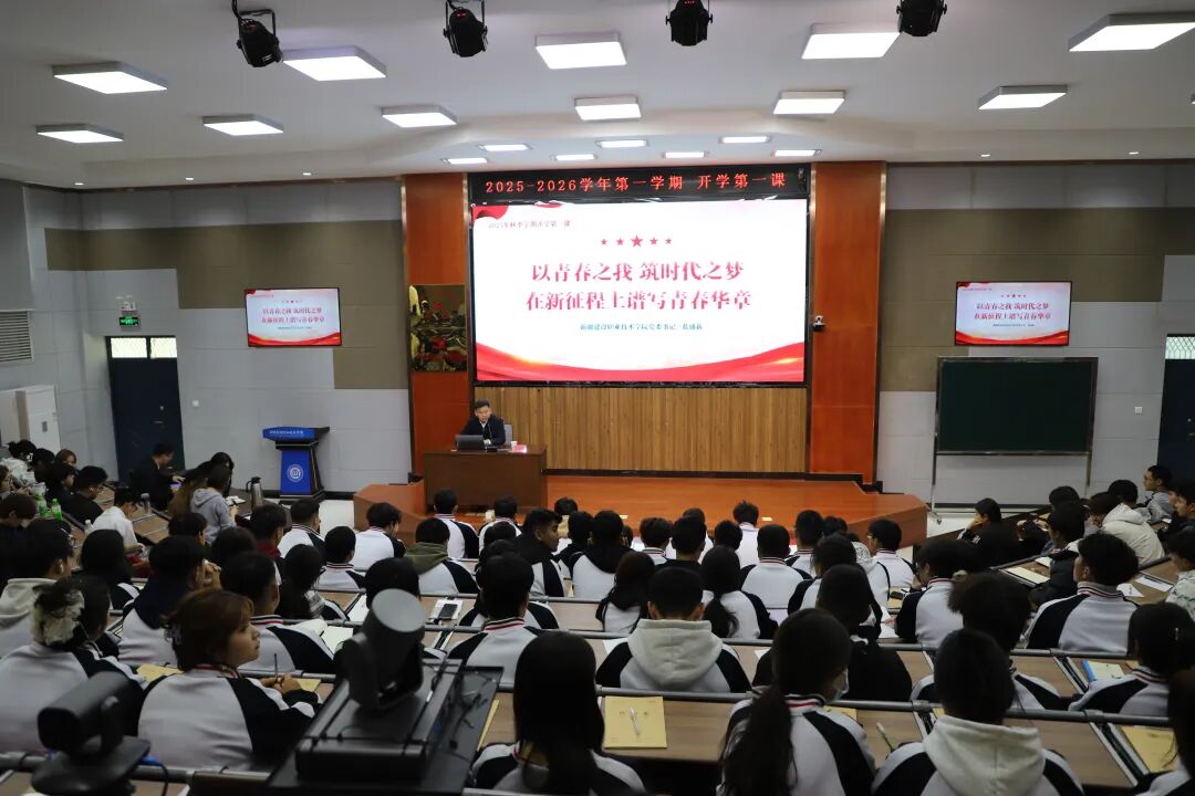 在这个充满希望与收获的季节,10月9日上午,学院党委书记蓝盛新以《以青春之我 筑时代之梦——在新征程上谱写青春华章》为题,为全体大一新生及辅导员讲授了一场别开生面的“开学第一课”。课程通过线下会场与线上直播相结合的方式,在三校区同步进行,共同开启了一段意义非凡的“心智旅程”。