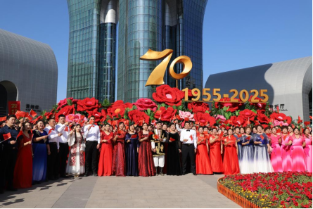10月的乌鲁木齐沉浸在新疆维吾尔自治区成立70周年满满的喜悦氛围中,“六馆一心”装扮得花团锦簇,每个角落都洋溢着喜悦与祝福,大学生合唱团每个学子的心都在被同一种炽热的喜庆点燃。合唱比赛开始前,合唱团还参加了广场举行的快闪活动,各民族群众一起唱响《歌唱祖国》,唱响爱党爱国、民族团结主旋律,凝聚社会正能量。在此次决赛中,我院合唱团演唱了新疆民歌《阿拉木汗》,合唱团通过细腻的情感处理和生动的语言表达,将歌词中的每一个细节都展现得淋漓尽致。听众在聆听的过程中,不仅能感受到欢乐与热情,还能深刻体会到新疆各族人民对于生活的热爱和美好事物的向往。合唱过程中加入了舞蹈,给人以赏心悦目、轻松愉快的感觉。