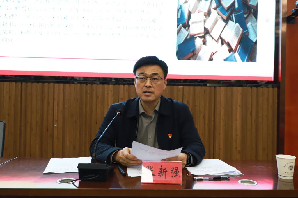 张新强在题为《坚持实事求是,坚守初心使命,在砥砺奋进新征程中展现新担当新作为》的专题辅导中,围绕把握实事求是思想精髓、牢记初心使命、展现担当作为三个方面,结合党史与时代要求,激励全体学员强化理论武装、落实立德树人,将思想政治工作贯穿教育教学全过程,构建“三全育人”格局,弘扬劳模精神、劳动精神、工匠精神;同时要服务新疆发展大局,深化产教融合与校企合作,提升师资能力与教学创新水平,不断加强党的建设,为把学院建成特色鲜明、疆内一流、辐射中亚的高水平职业院校,为中国式现代化新疆实践和中华民族伟大复兴贡献智慧力量。