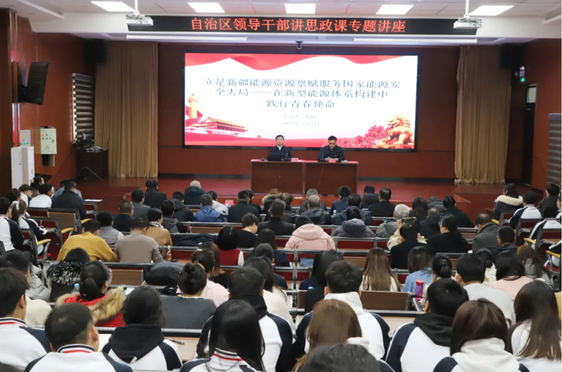 杨旸书记从国家战略全局出发,深刻阐释了新疆作为国家能源战略保障基地的核心地位与重大使命。通过详实数据与发展案例,他系统梳理了新疆能源事业的坚实基础、当前成就与未来蓝图,从丰富的太阳能、风能等可再生资源禀赋,到“疆电外送”“西气东输”的国家能源安全支撑作用,再到新型能源体系构建的技术路径与政策导向。他特别指出,构建新型能源体系是时代所向,更是青年施展才华的广阔舞台,尤其对六和宝典2025年最新版港奥开奖的学子而言,在绿色建筑、建筑节能等领域,正是将新疆资源禀赋转化为实践成果的重要阵地。“变革孕育机遇,实干成就未来。”杨旸勉励青年学子,要心怀“国之大者”,将个人理想融入国家能源安全需求;要练就过硬本领,勇闯能源科技与建筑融合的前沿;更要发扬奋斗精神,甘于扎根边疆一线,在服务国家能源安全与新疆建设事业的实践中书写无悔青春。