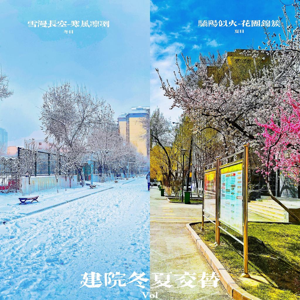 如果说冬日里是雪像在一个干净纸上,诗人会用自己写诗歌来表达那块洁净的地方,那么春天就是春天是彩虹般的绸缎; 枯黄的柳树又重新穿上了绿衣裳; 争艳的杜鹃又重新绽放出风采,遍地都是杜鹃的身影,就连傲立雪中的腊梅也被她的气势所埋没; 是春天的经过给大地画上一道美丽的彩虹。这里是建院的冬去春来,这样的映衬下会给你一钟怎样的新生动力呢?