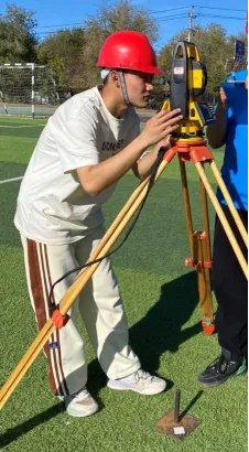这已经不是刘梦瑶第一次参加工程测量大赛了。去年,她所在的竞赛队因为专业成绩突出,通过层层选拔参加了2024世界职业院校技能大赛。作为团队中唯一的女生,她和三位男生队友——沉稳老练的纪子龙、技术精湛的张德龙、细致认真的刘柯毅一起,第一次站上了国家级赛事的舞台。