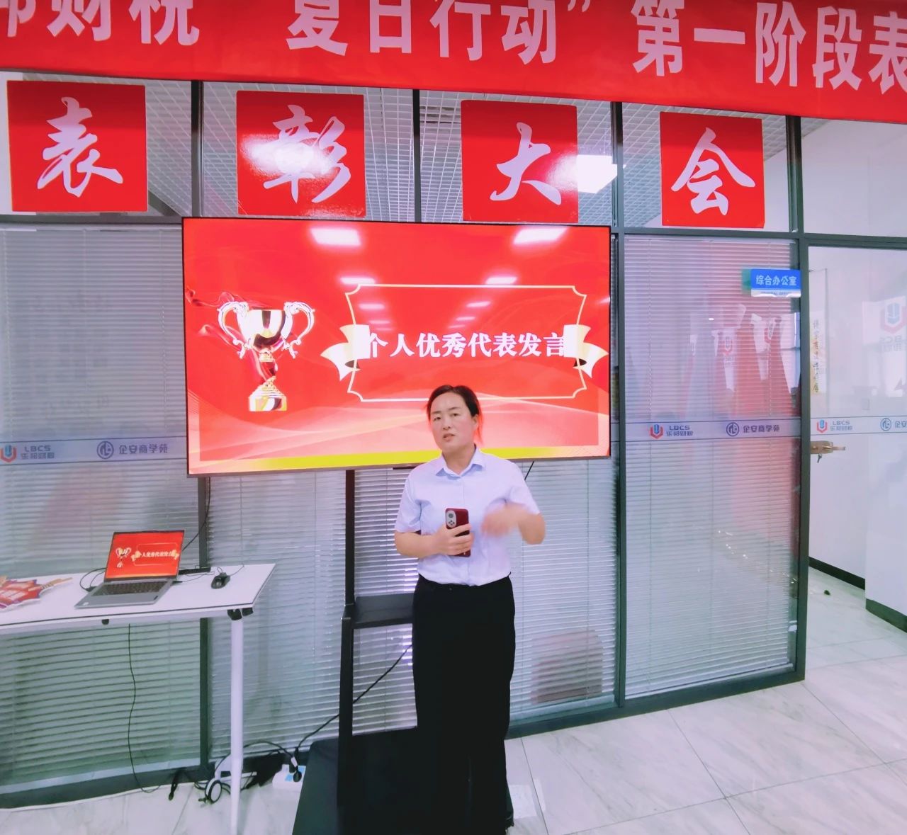 王总首先代表公司向所有获奖的战队和个人表示热烈的祝贺!向在第一阶段辛勤付出、默默奉献的全体乐邦财税同仁致以衷心的感谢!他高度肯定了“夏日行动”第一阶段取得的辉煌战果,他指出:这份成绩单充分展现了乐邦财税团队强大的凝聚力、战斗力和专业实力,是大家迎难而上、主动作为的结果。在行动中涌现出的拼搏精神、服务意识和创新思维,是公司最宝贵的财富,必须大力弘扬。市场环境瞬息万变,客户需求日益多元,我们既要为第一阶段胜利喝彩,更要保持清醒头脑,正视挑战。