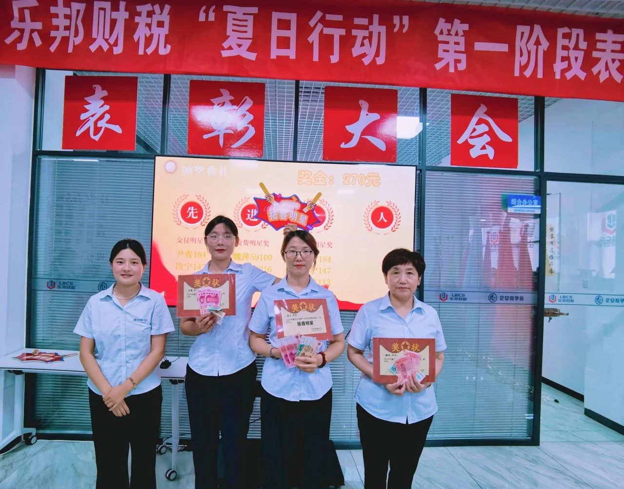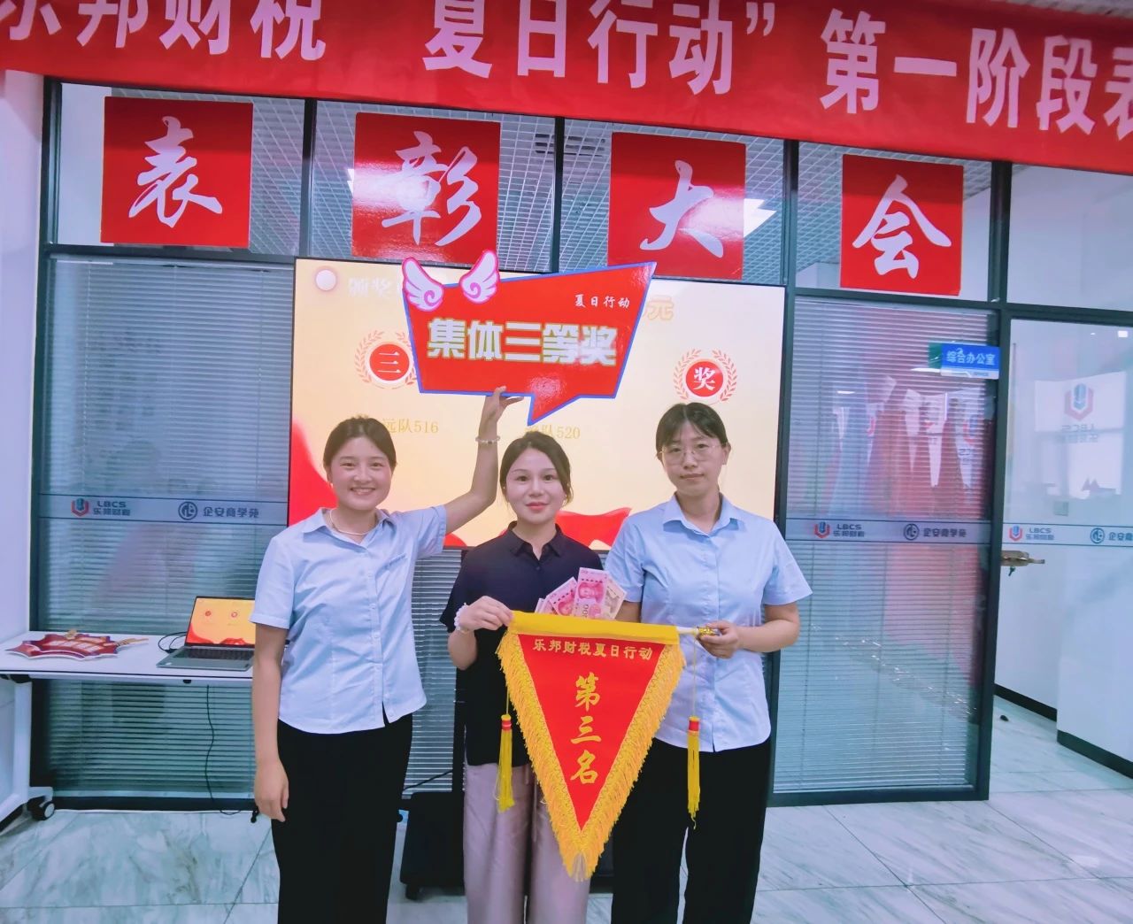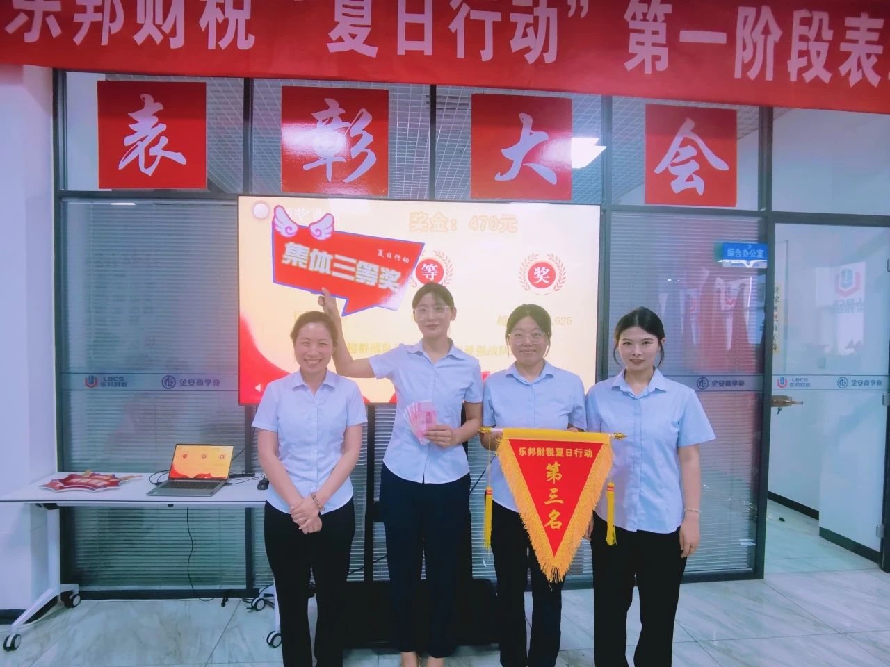骄阳似火,奋斗正酣!在乐邦财税全体人员凝心聚力、奋勇拼搏下,2025年度“夏日行动”第一阶段战役取得骄人战绩!为表彰先进、树立标杆、激励全员再创佳绩,6月20日下午,乐邦财税隆重举行了“夏日行动”一阶段表彰大会。全体同仁齐聚一堂,共享荣耀时刻,共绘奋进蓝图!