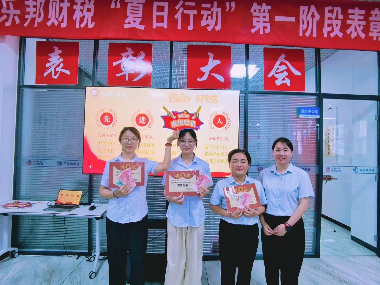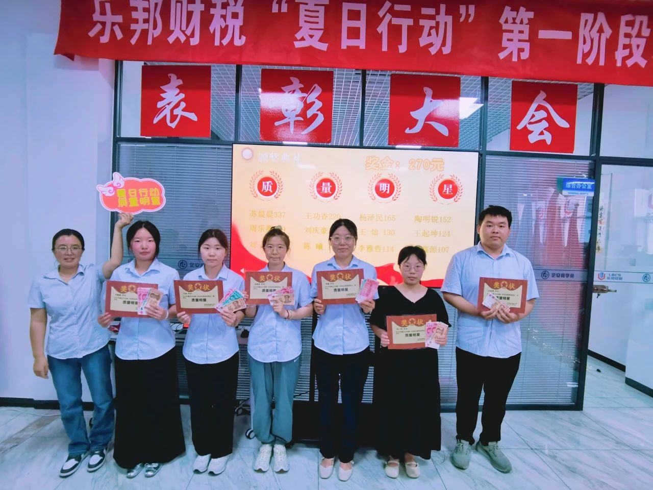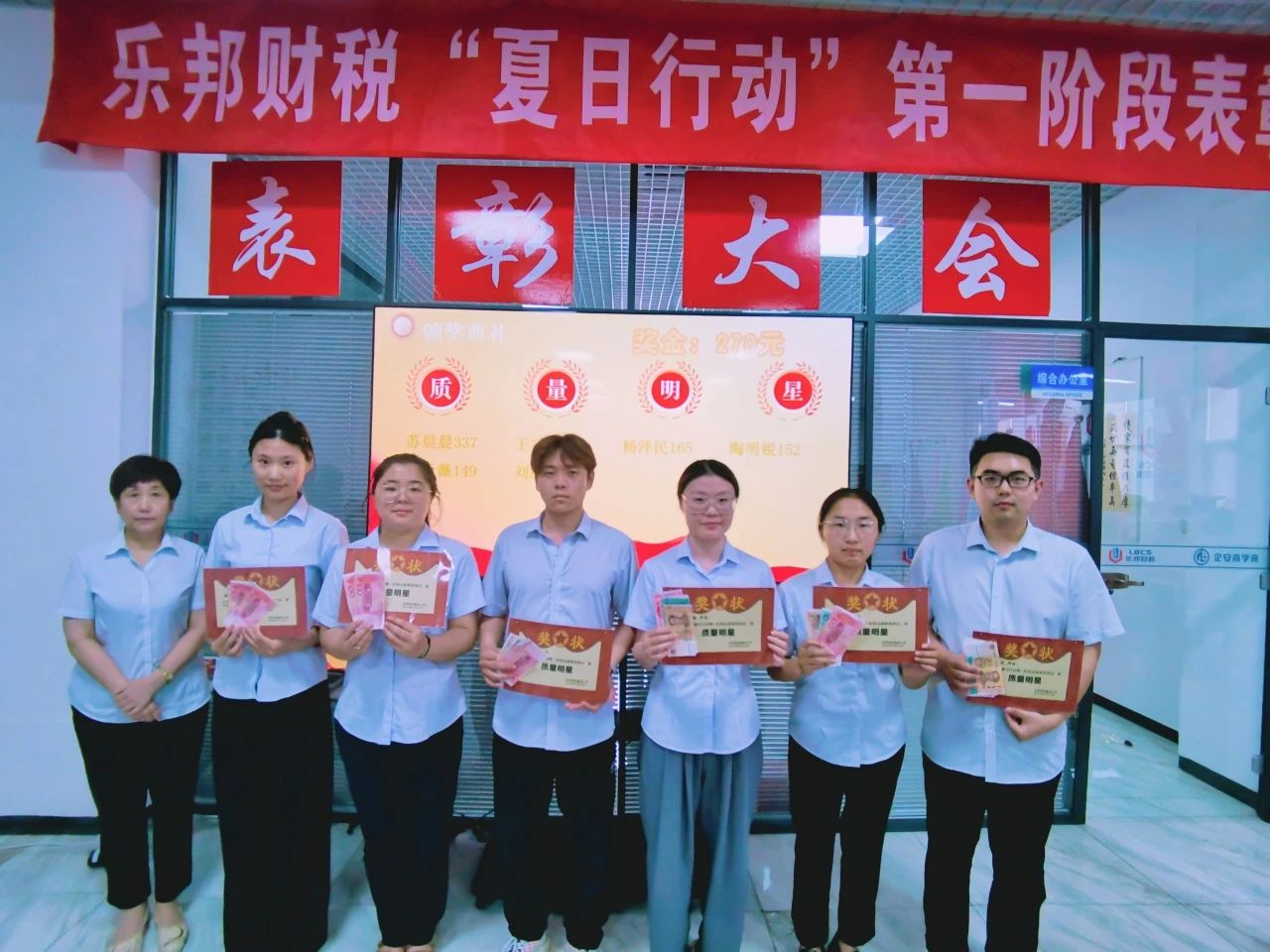 骄阳似火,奋斗正酣!在乐邦财税全体人员凝心聚力、奋勇拼搏下,2025年度“夏日行动”第一阶段战役取得骄人战绩!为表彰先进、树立标杆、激励全员再创佳绩,6月20日下午,乐邦财税隆重举行了“夏日行动”一阶段表彰大会。全体同仁齐聚一堂,共享荣耀时刻,共绘奋进蓝图!
